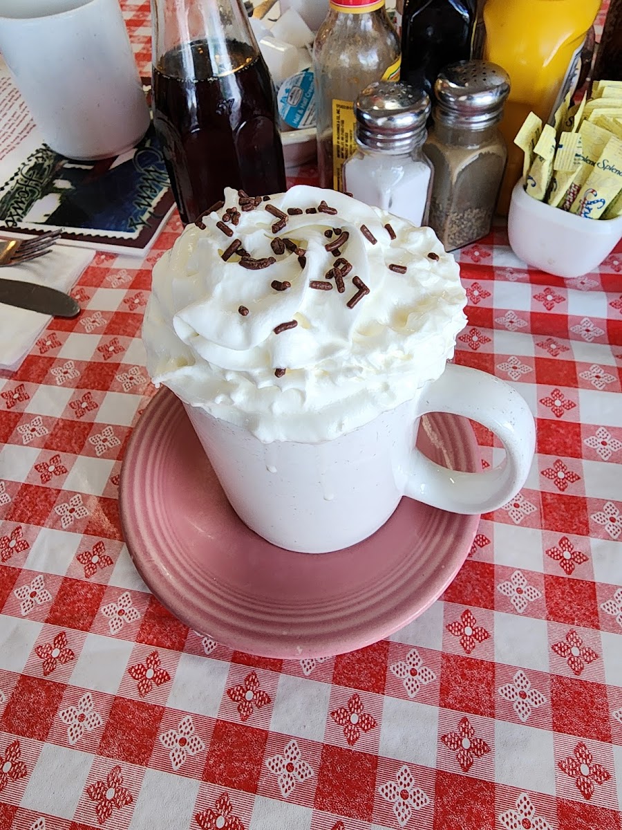 To accompany your meal, Ellen's offers a selection of beverages including decaffeinated coffee and house-made hot cocoa that comes delightfully crowned with a billowing mountain of whipped cream, as mentioned by several patrons. It’s the perfect little indulgence to complete your breakfast experience.